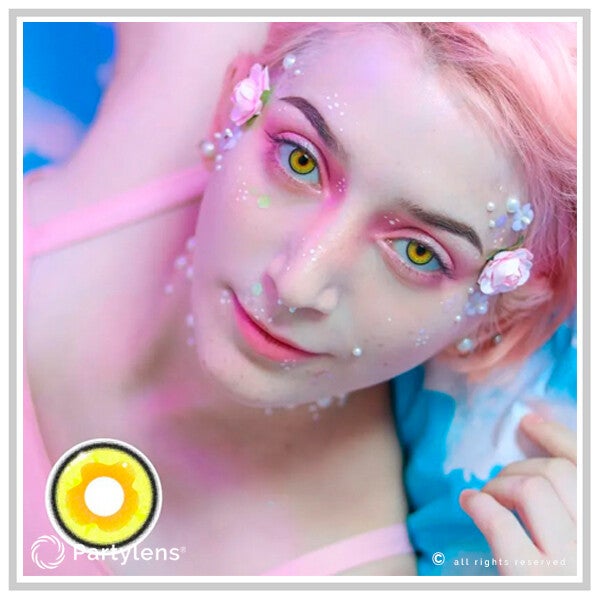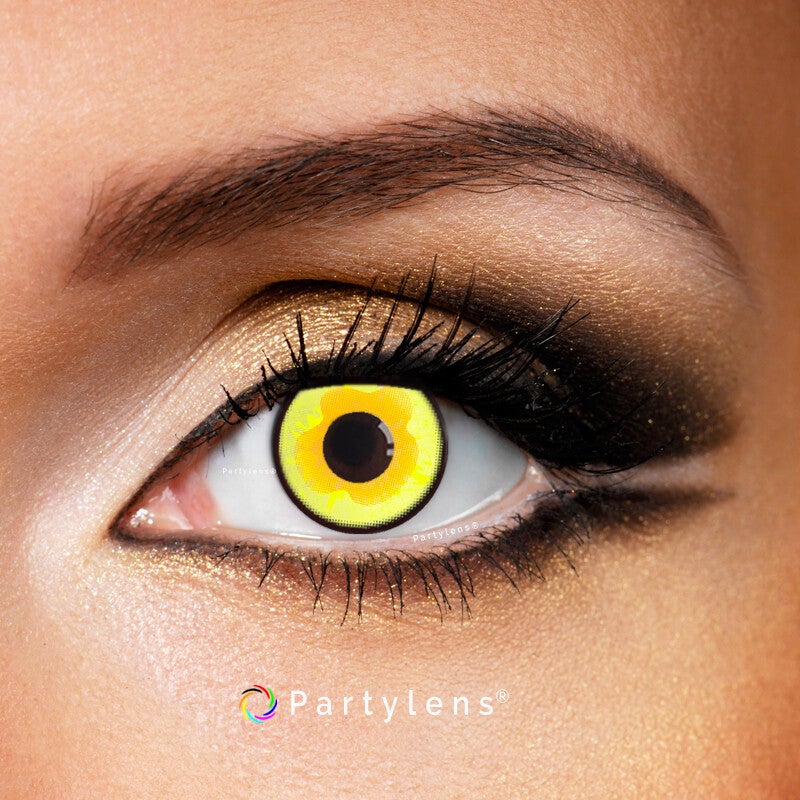 Mystic Yellow is een mooie gele kleurlens van Partylens® zonder sterkte, welke een mooie effect geeft aan uw ogen.