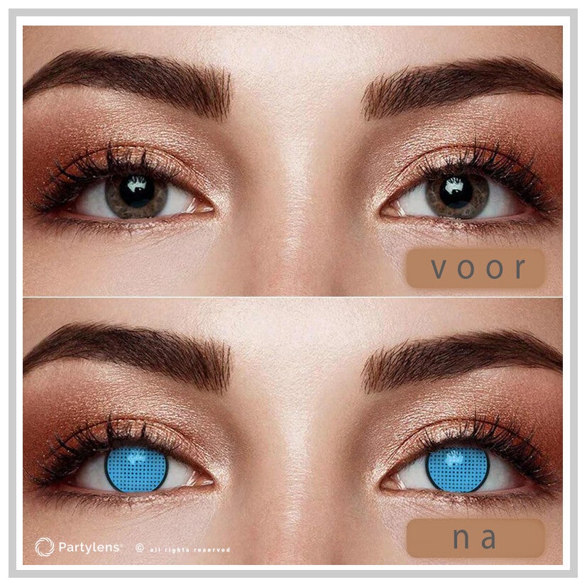 Blue Mesh Manson is een mooie kleurlens van Partylens® zonder sterkte, welke een mooie effect geeft aan uw ogen.